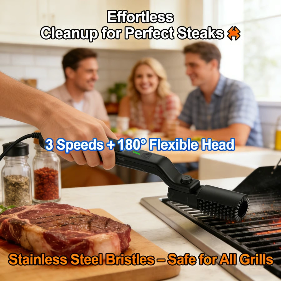 Three Times More Effective: 💪This electric BBQ brush removes oil, grease, and grime up to three times more efficiently than manual brushes.